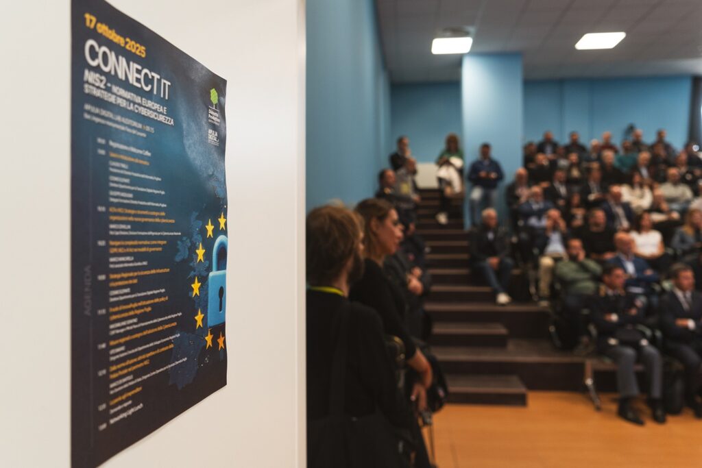 Oggi 17 ottobre 2025, nel mese che l’Europa ha dedicato alla Cybersecurity, si è tenuto l’evento “ConnectIT | NIS2 – Normativa Europea per la Cybersicurezza” presso l’Apulia Digital Lab Auditorium (Ingresso Monumentale della Fiera del Levante), un evento organizzato dal Distretto Produttivo dell’Informatica pugliese e dedicato alla NIS2, la principale normativa europea in materia di cybersicurezza.