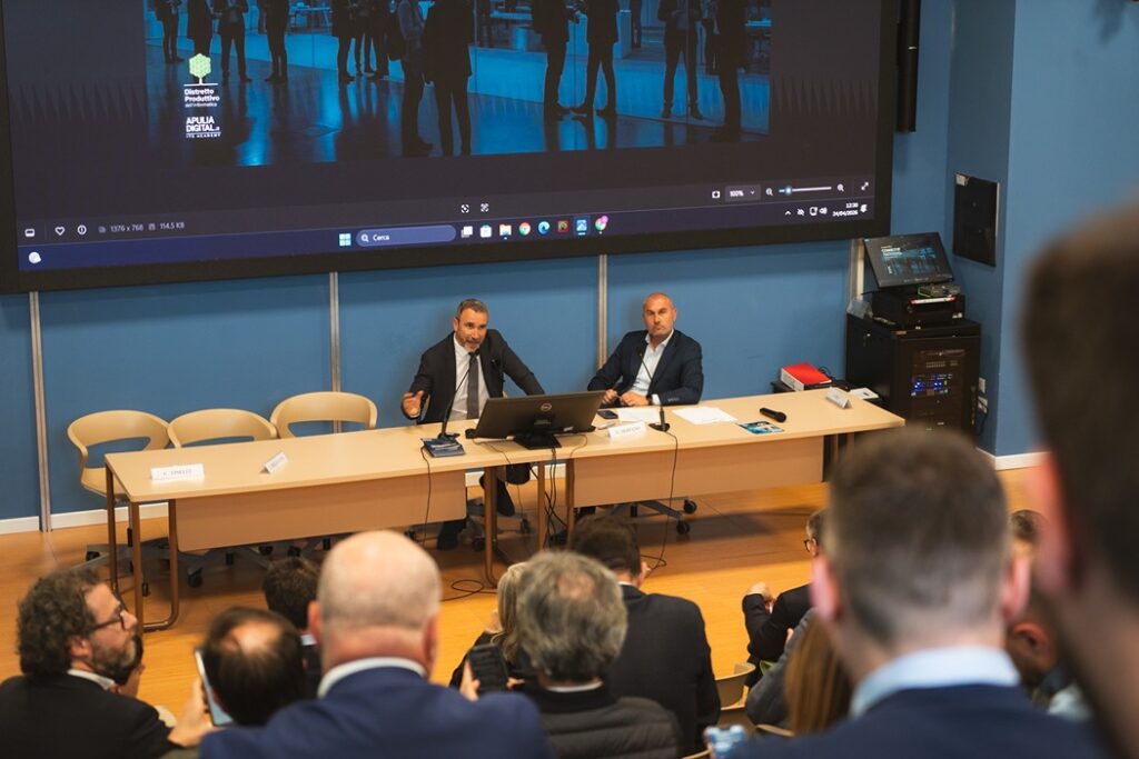 L’apertura dei lavori è stata affidata ai saluti istituzionali del Presidente del Distretto, Claudio Tinelli, seguiti dall’intervento di Giacomo Cassone per Apulia Digital Maker (ITS). Cassone ha evidenziato come l’offerta formativa dell’ITS sia sempre più in simbiosi con le imprese: non solo percorsi di studio, ma un terreno comune dove le aziende diventano protagoniste attive della formazione degli studenti.
