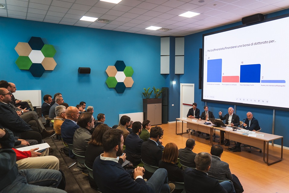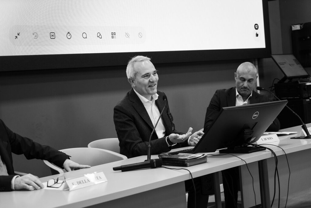 Il cuore tecnico dei lavori è iniziato con l’intervento di Tommaso Di Noia (Politecnico di Bari). Attraverso una presentazione interattiva, Di Noia ha dimostrato come la collaborazione tra impresa e università in ambito ricerca non sia solo una questione di budget, ma di persone. Ricercatori, dottorandi e studenti sono il motore dell’innovazione. Tuttavia, il cambio di paradigma necessario riguarda la percezione stessa dell’istituzione accademica: investire nella ricerca con le Università non significa semplicemente accedere a finanziamenti pubblici. Per l’azienda, scegliere l’Università vuol dire scegliere un partner che agisce a tutti gli effetti come un fornitore strategico, capace di garantire tempi certi e competenze d’eccellenza per presidiare tecnologie specifiche. A tal proposito, Di Noia ha sottolineato la natura simbiotica di questo rapporto: «Collaborare con l’Università conviene a tutti: l’azienda acquisisce un vantaggio competitivo reale e l’Università cresce e si evolve nel confronto costante con le sfide del mercato, innescando un circolo virtuoso di sviluppo per l’intero territorio».