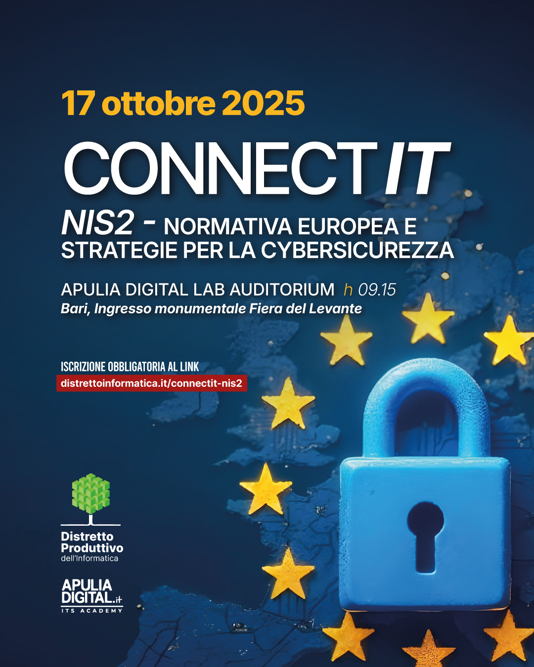 17 ottobre 2025 Bari, Apulia Digital Lab Auditorium (ingresso monumentale Fiera del Levante) dalle 9.15 alle 14.15 POSTI IN ESAURIMENTO: non hai ancora prenotato il tuo posto? Affrettati! Mancano solo 8 GIORNI all’evento che il Distretto Produttivo dell'Informatica pugliese ha organizzato per approfondire la NIS2 - Network and Information Security 2, la normativa UE che […]