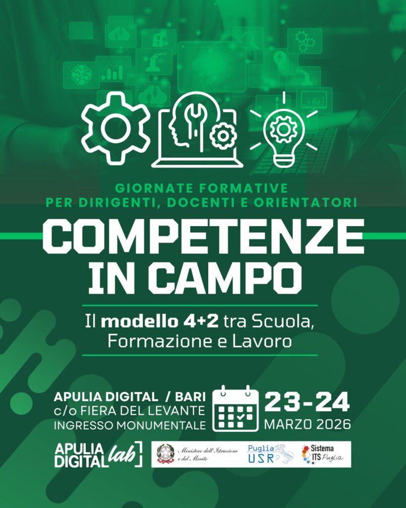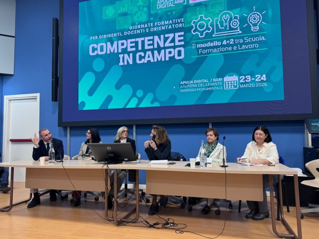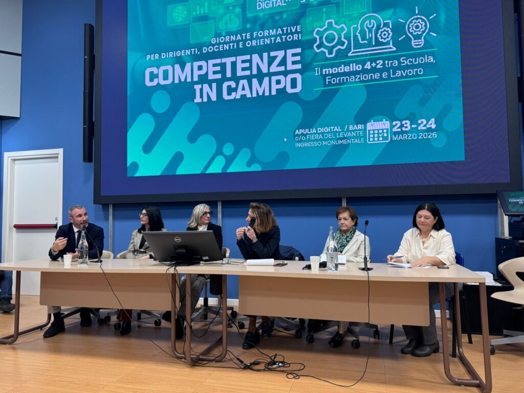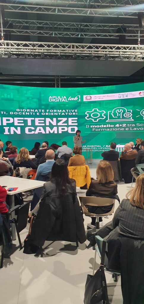 Si è concluso nei giorni scorsi a Bari, presso la sede dell’ITS Academy Apulia Digital, il seminario laboratoriale di due giorni “Progettare i Percorsi 4+2 – Competenze in campo”. L’iniziativa, di rilevanza strategica per il territorio, è stata organizzata dall’ITS Apulia Digital in stretta collaborazione con l’Ufficio Scolastico Regionale (USR) per la Puglia e con con il patrocinio del Ministero dell’istruzione e del Merito e Sistema ITS Academy Puglia.